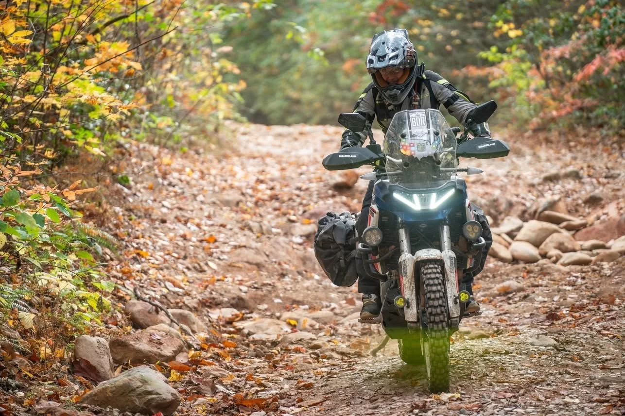 This four-day, three-night, 350-mile guided adventure ride explores the best dual-sport terrain in the North Georgia mountains, primarily within the Chattahoochee National Forest. The route combines graded forest roads, primitive two-track, and scenic backcountry pavement beneath dense forest canopy. Riders travel through mountain towns including Ellijay, Dahlonega, Suches, and Helen, criss-cross the Appalachian Trail, tackle rugged climbs, carve twisty pavement, and navigate multiple creek crossings.