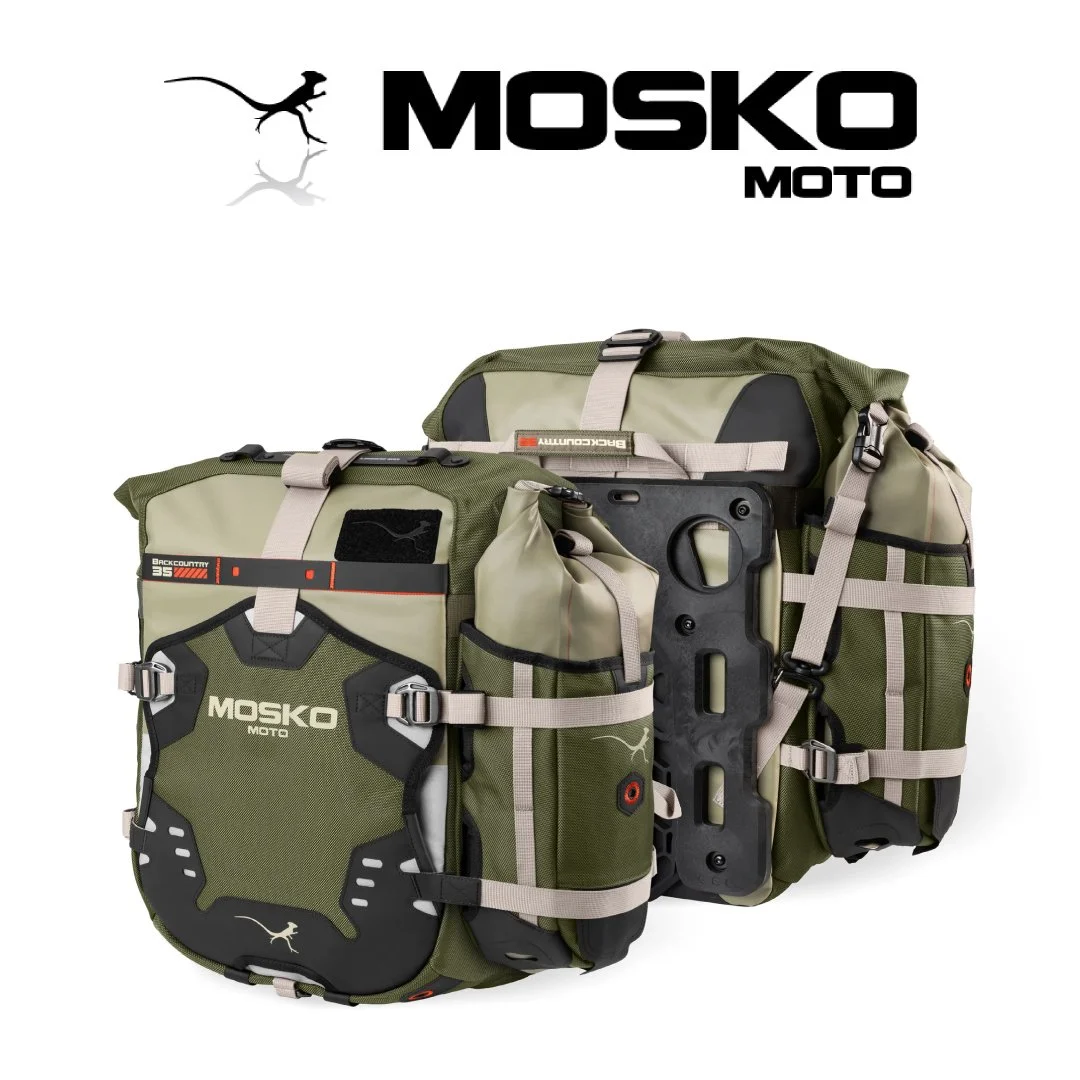 Mosko Moto’s 25L + 35L Offset Backcountry Panniers are built for rugged adventures, offering exceptional durability, a fully waterproof design, and easy gear access through a quick-release mounting system. With modular storage options, MOLLE panels, and external beaver tails for wet or bulky gear, they’re a top choice for organized, off-road travel.