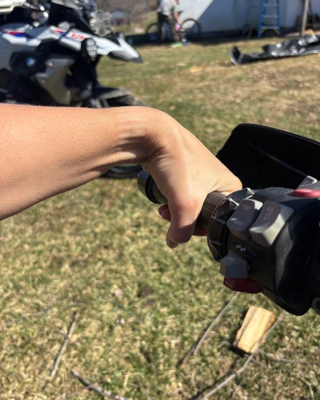 We typically roll on and off the throttle, forward and back. These hand movements are controlled by forearm muscles that cross the wrist. We are using them all the time while on the bike.